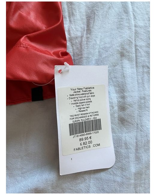 Fabletics Red Waterproof running jacket XS. Never worn. Tags still attached. RRP £82 From a smoke and pet free home. See photos for full list of features