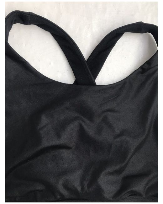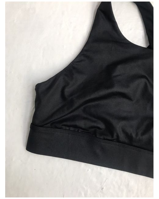 Fabletics Black Shine/ Leather Look Crossback Bra, Size M. Lovely shine finish with an elegant cross back design. Condition is New With Tags.