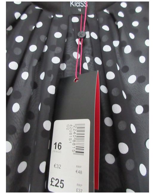 Ladies brand new never been worn Black and White Spotty Summer Top by Klass. Size 16. Sleeveless with black top with white spots and the bottom part white with black spots. Polyester. Excellent new condition.