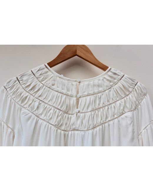 Twisted pleats separated by rows of open stitching give this billowy silk blouse the sweetest texture. 100% silk. Dry clean only.