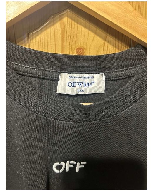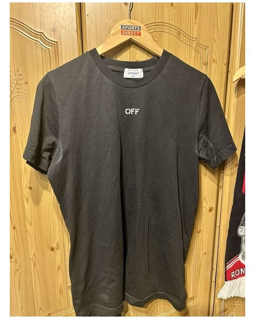 Crafted by the sought-after brand Off-White, this chic black T-shirt is a must-have staple for any contemporary wardrobe. Tailored to fit a regular size M, it features short sleeves that make it an ideal choice for both casual outings and more elevated occasions. item will be cleaned and washed before ship