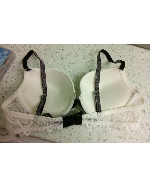 Women's White Slightly Padded Bra 34B Off with Glittery Straps see photos