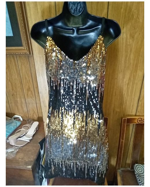 This stunning dress from Krisp is the perfect addition to any wardrobe. It features a flattering stretchy fabric with a sparkly sequin design that will make you stand out from the crowd. The dress is a size 10 and comes with tags, making it a great gift for any woman who loves to look her best. The sleeveless mini style dress has a pullover closure and is made from high-quality polyester material that is both comfortable and durable. Its multicoloured design and sequin accents make it perfect for any occasion, from a night out with friends to a formal event. Get ready to turn heads and make a statement with this gorgeous dress from Krisp.