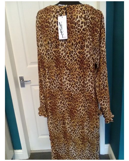 Romance Leopard Print Crinkle/Pleated Long Sleeve Dress 22 BNWT