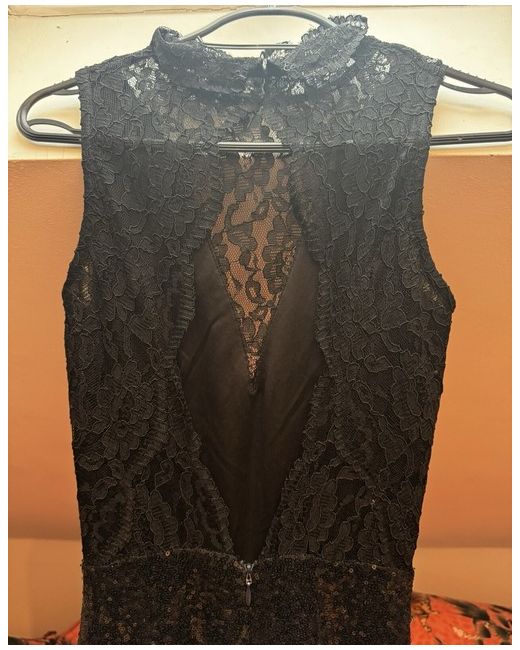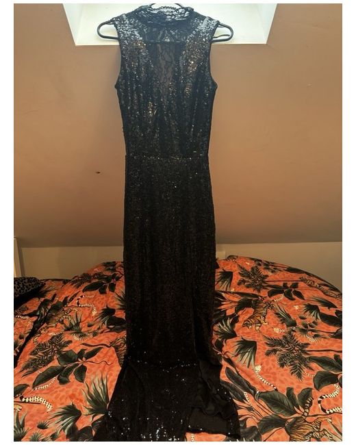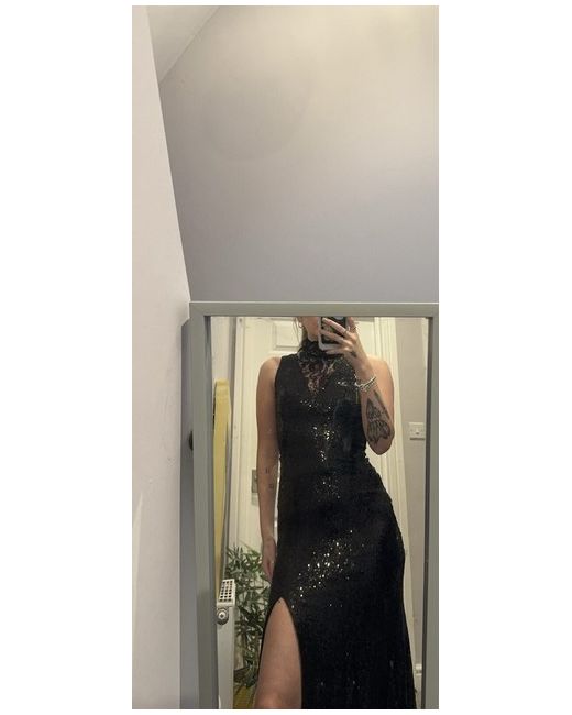 Gorgeous long TFNC sequin black slit sparkly dress , lace collar and backless with a zip and a leg slit . Lace detailing on the back. It’s a heavy good material and I am very sad to be selling it I just don’t think I will go anywhere for it to be worn :( Perfect for an occasion like prom :) In perfect condition no tags
