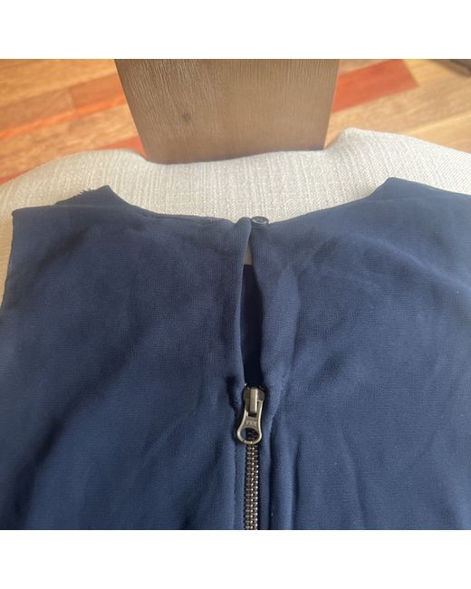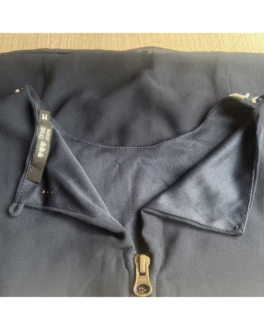 London Topshop navy frill button blouse L