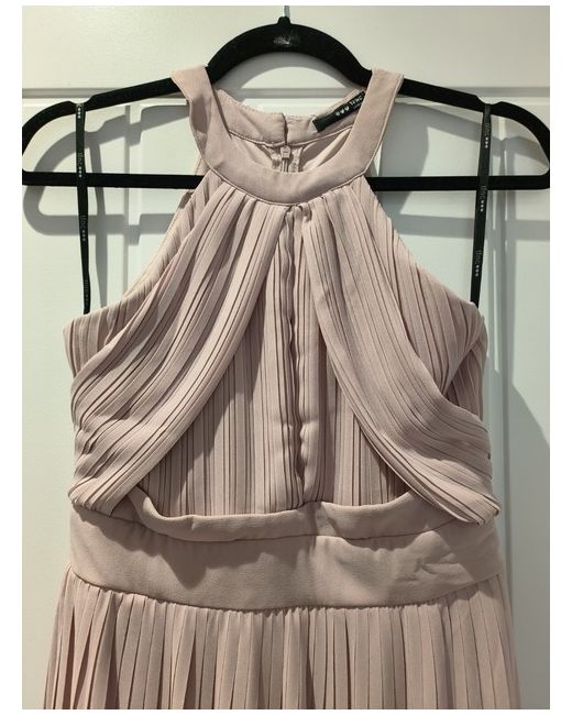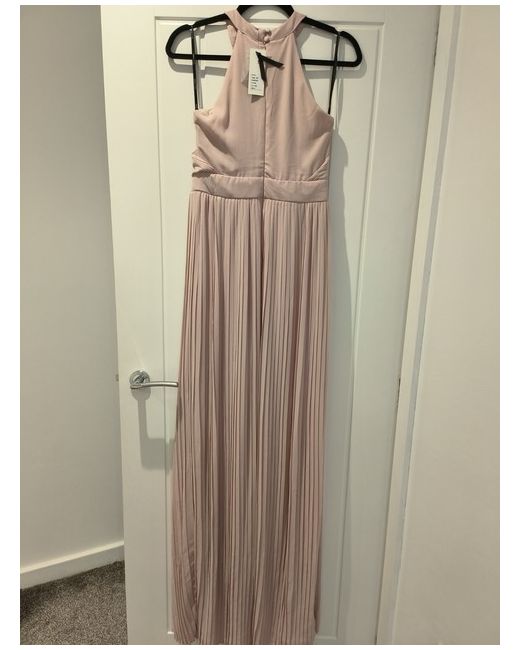 bought to wear to a wedding but didn't end up wearing. halter neck design with waistband detail. has leg slit on one side and zip fastening.