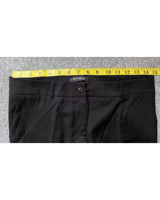 Pre owned trouser Almost New Vintage Yves Saint Laurent Trousers Uk size small (slim fit) long Slight stretch material Front side pockets Front zip and a button Side strip detail Size approximately: Trouser length 41 1/2 inchesā106cm Waist 14 1/2inchesā37cm Inside leg 33inchesā84cm Bottom 6 1/2inchesā17cm Pet free -smoke free home