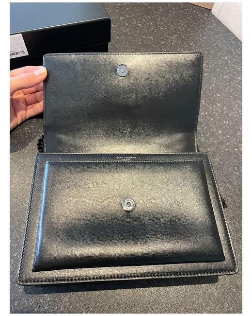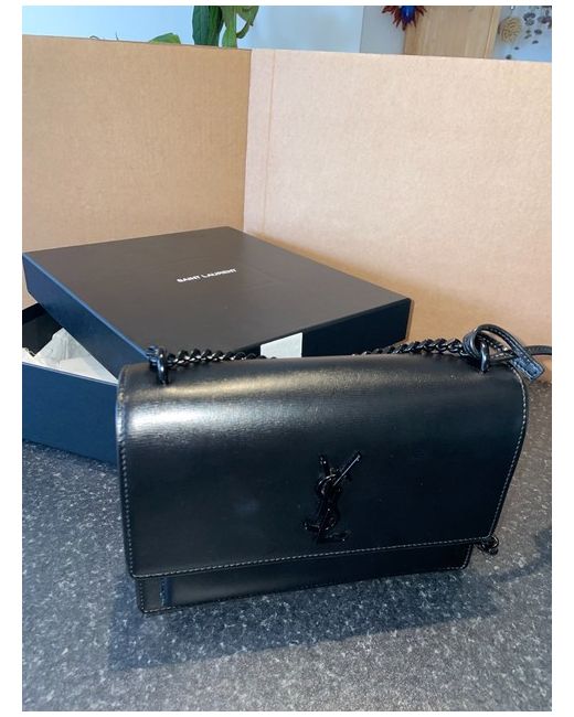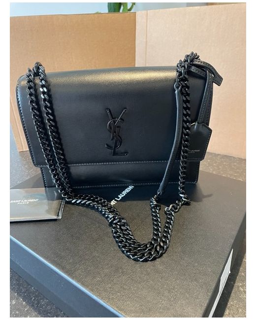 CALFSKIN LEATHER. Sliding chain strap can be worn on the shoulder or crossbody. ONE INTERIOR SLOT POCKET.