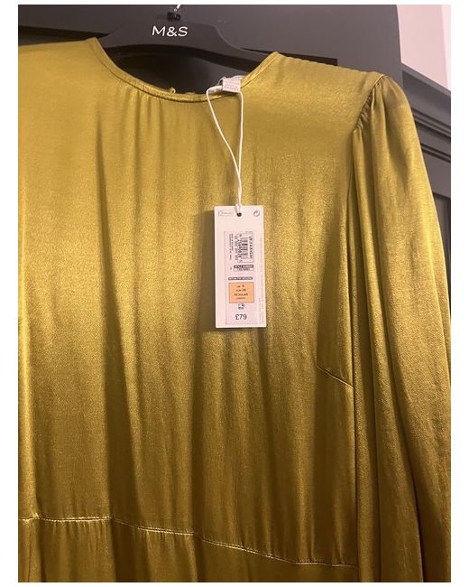 MS X GHOST Satin Shirred Midi Waisted Dress UK 12 Reg