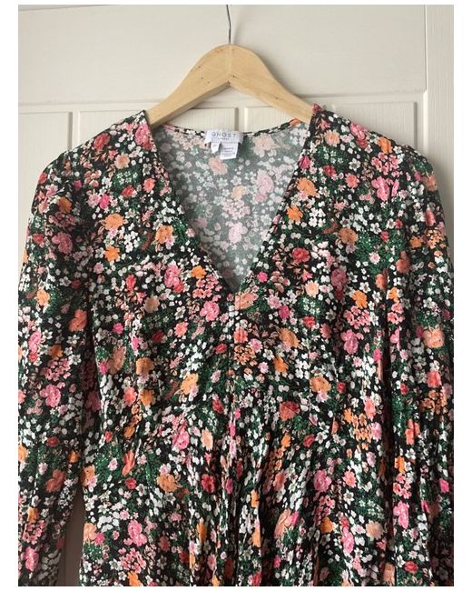 This beautiful Ghost dress in size L (14) is the perfect addition to any wardrobe. The dress features a fit and flare style, with half sleeves and a knee-length hemline. Floral pattern is a lovely blend of pink and black and viscose material is comfortable and stylish, making this dress suitable for both work or a special occasion. Worn once for a wedding.