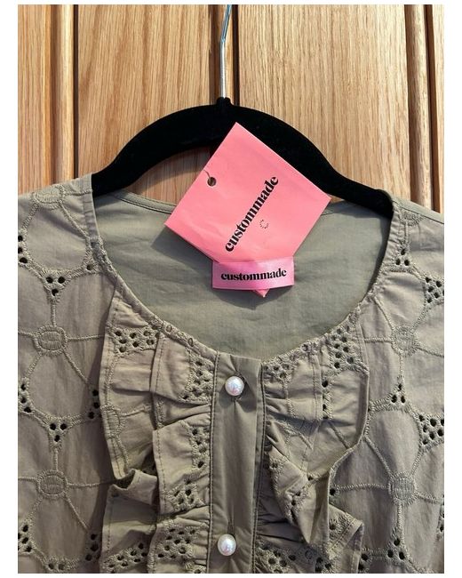 Size 38 medium Brand is custom made Tried on but not right Brand new with tags but tag has fallen off Lovely kakhi green colour Puff sleeves Retail was £140 so grab a bargain