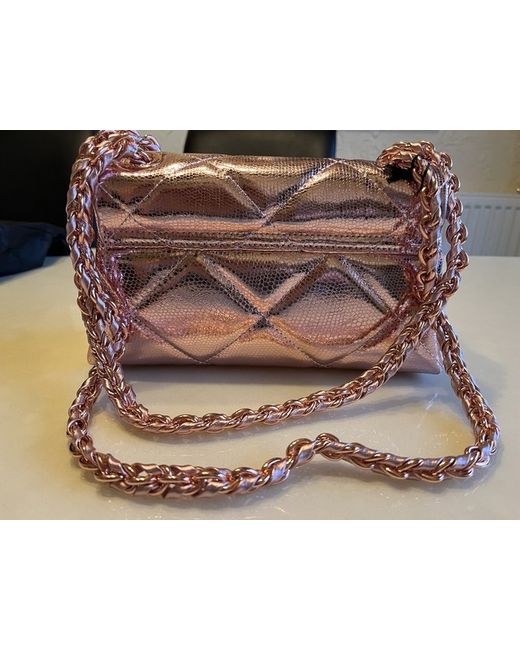 Pink metallic leather small quilted shoulder bag..Dust bag