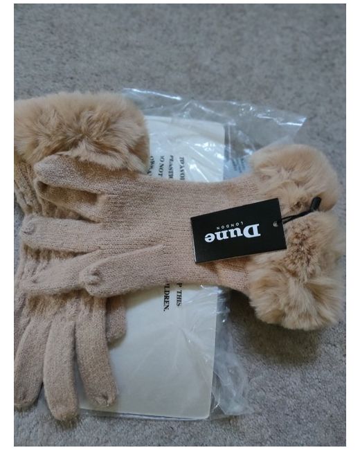 brand new and unworn dune camel gloves with fluffy trim on the edge