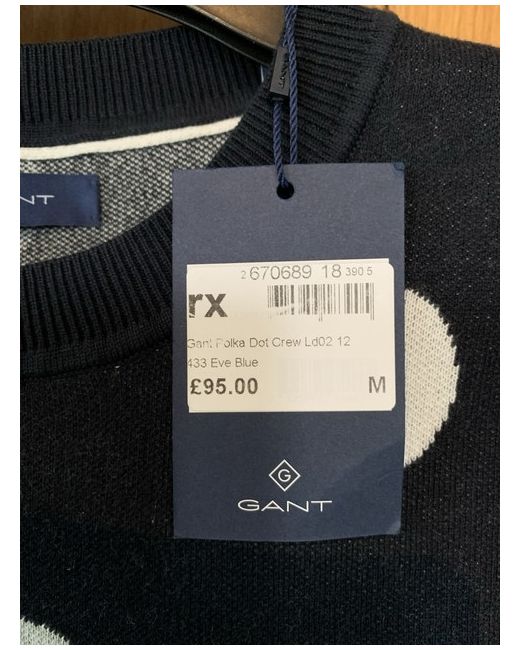 BNWT Gorgeous spotty sweater by GANT 100% cotton Navy & white Long sleeves Labelled M but a bit on the small side Perfect for British summer weather About a sweatshirt weight Pit to pit is 48cm Length is 57cm