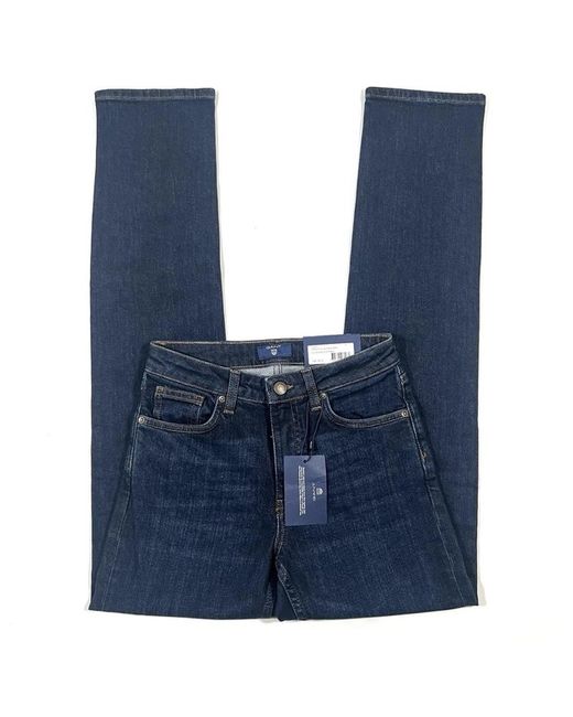 BNWT Gant dark blue indigo-dyed slim straight fit jeans w26 l32 These jeans are crafted with a straight fit and zip/button up fly. The jeans are detailed with a 5-pocket design, branded shank buttons and a leather logo patch at the back.