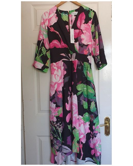 Feel comfortable and elegant everywhere you go in this beautiful wrap dress. The tie back cinches you in, whilst the wrap design flatters. The stunning print of watercolour flowers in peach and dusty pink on green background will make you feel extra special whatever the occasion