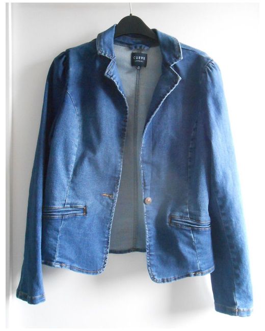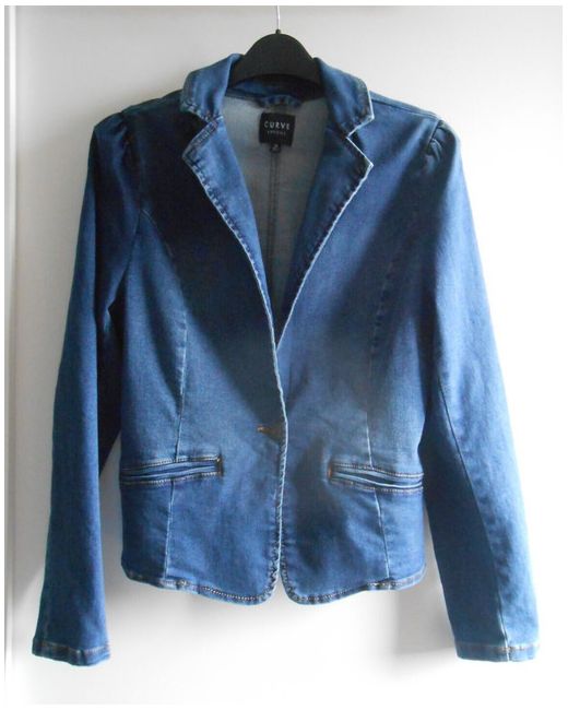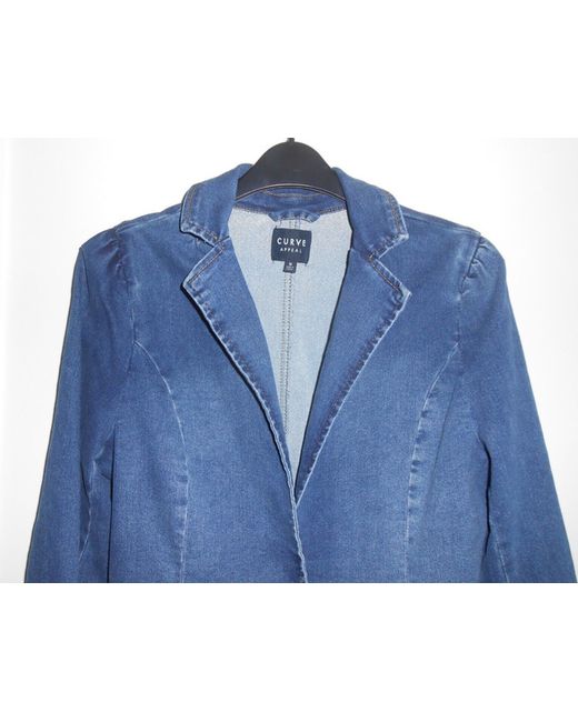 Curve Appeal Denim Jacket. Material is lightweight denim (slight stretch to it) 72% cotton, 25% polyester, 3% spandex. underarm to underarm 19". back of neck to hem 21".