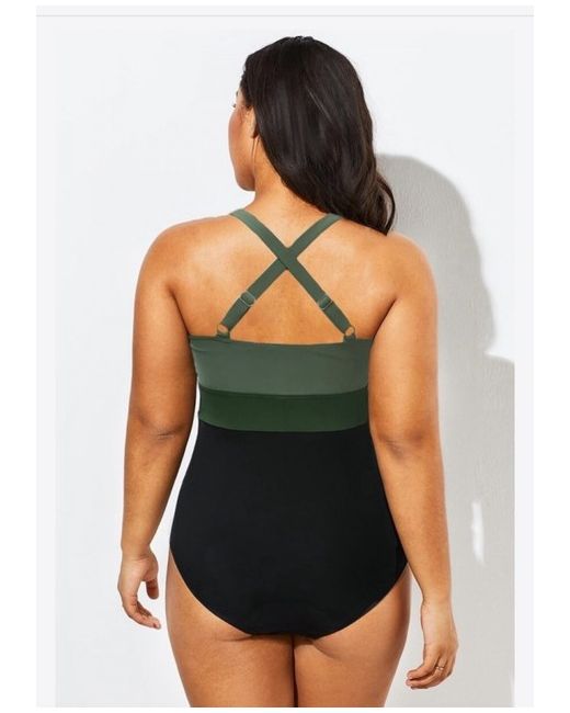 Curve green and black swimsuit. New and unused. Wrong size bought and missed returns date. Medium size 12-14. Sizing runs slightly small. Retails at £38.99, selling for £30. Extra information in pictures, taken as screenshots from Curve website.