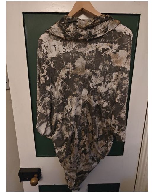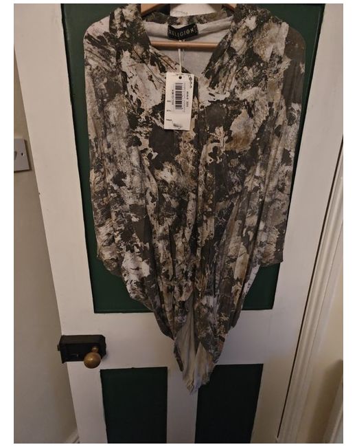 Random patterned baggy sleeve, cowl style neck and extra long rear drop random patterned religion clothing top. The top showcases a vibrant, multicoloured pattern that's sure to stand out, crafted from soft, machine washable viscose for comfort and ease of care.