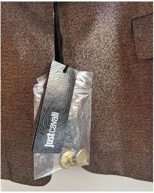 Just Cavalli beautiful bronze jacket with leopard print lapels. Single fastening - gold button on a chain. Slit pockets - still sewn up to keep the shape of the jacket. Only worn around the house when trying on several times. Selling as it as the shape doesn’t suit me. A genuine bargain, bought for over £150