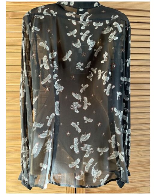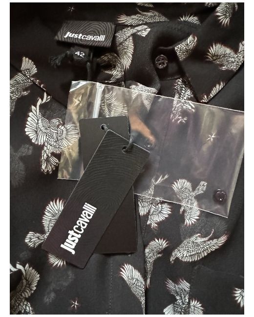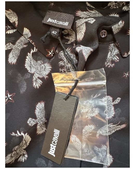 Stunning Just Cavalli Flying Eagle print shirt size UK10. New with Tags Black sheer material, with white eagles with burgundy outline. button front High quality designer item. Unfortunately I kept it for good too long & it no longer fits