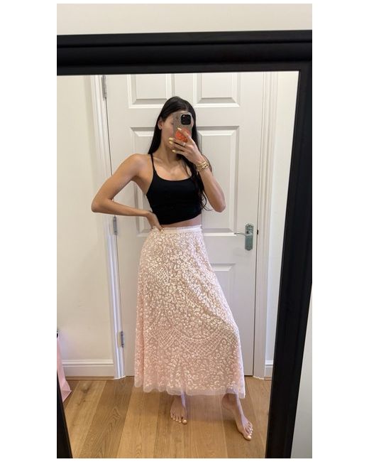 - Kisses tulle decorated with sequins - Style is fully lined. - 100% Recycled Polyester - 100% Recycled Polyester Lining - Concealed zip at centre back. - Satin ribbon waistband with frill detail - Made in India.