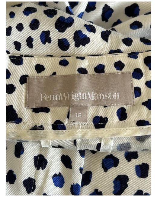 2 x side pocket plus zip, button and hook fastening. Colour: White with navy and lighter blue abstract dots.