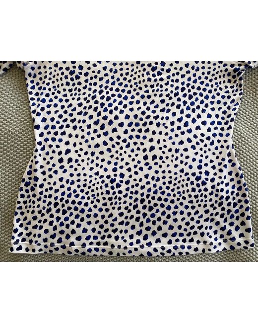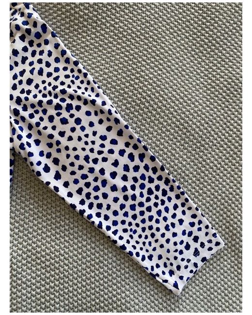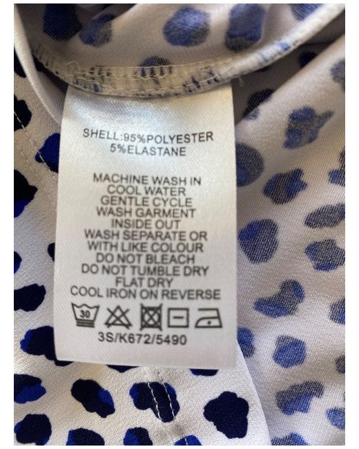Scoop neckline. Navy/White Pattern Top. Machine washable. Double stitched hem/neck/cuffs. 95% polyester/5% elastane.