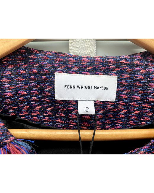 Fenn Wright Manson Tailored Jacket. This is a tailored box jacket that has a textured navy and pink fabric. Rocket Jacket | Navy Pink. 21" length.