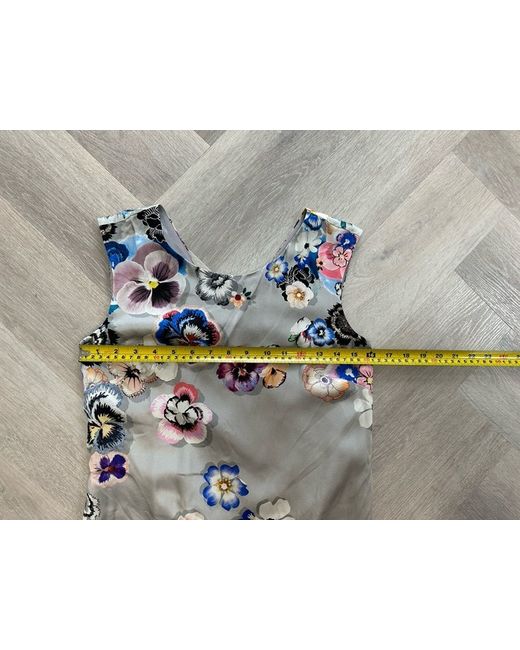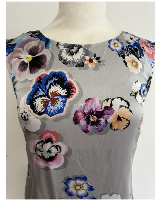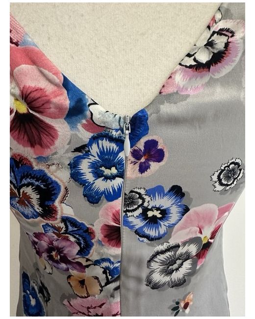 This is a Fenn Wright Manson grey floral shift dress in size 8 petite. Made of 100% silk, it features a pansy pattern and is lined. The dress falls to knee length and is designed for women. New with tags.