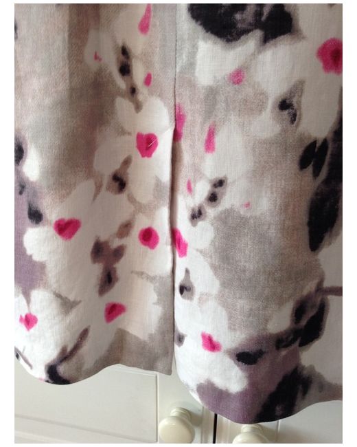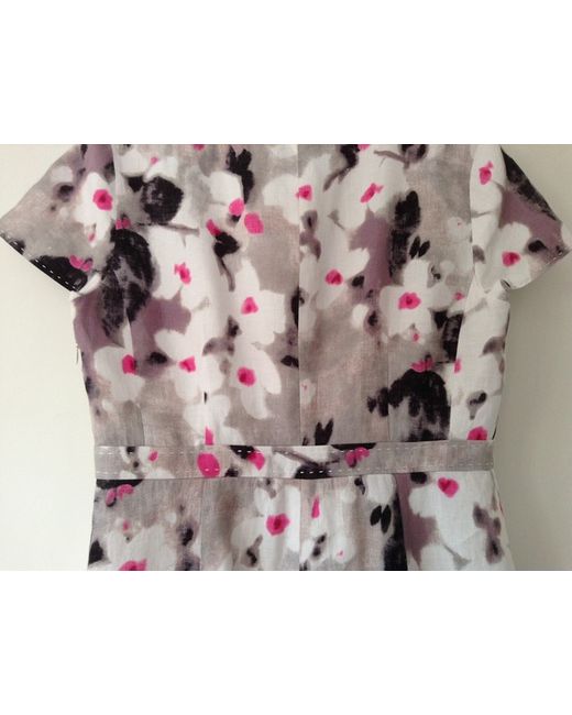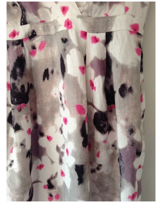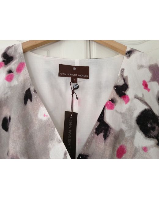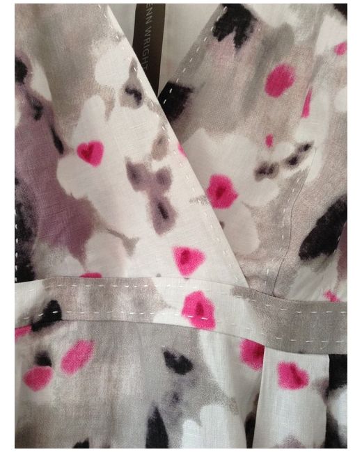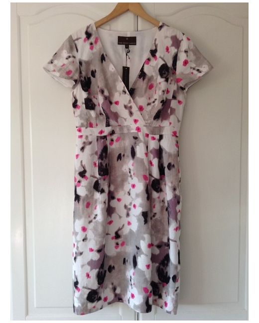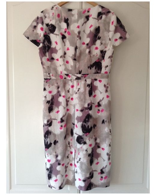 Fenn Wright Manson Dress. Pink, Grey, White, Black & Lilac Blurred Jasmine Print Pattern. Short Sleeve Dress. Bought for a wedding but never used. V-neck wrap over front. Has two darts on either side at the bust and four darts at the back.