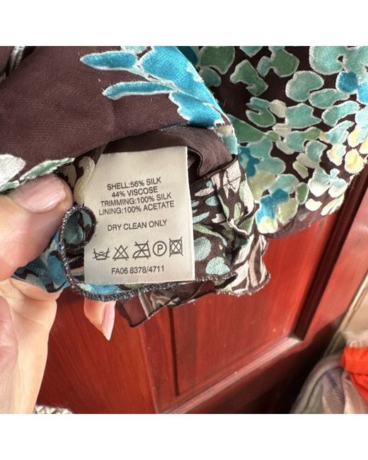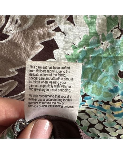 This is a new Fenn Wright Manson top in size 14 for women. It features a short sleeve design and is suitable for various occasions like parties, casual outings, formal events, and workwear. The top is made of a blend of silk, polyester, and viscose, with a multicoloured pattern. The fabric type includes shell, silk, and viscose, giving it a stylish and elegant look.