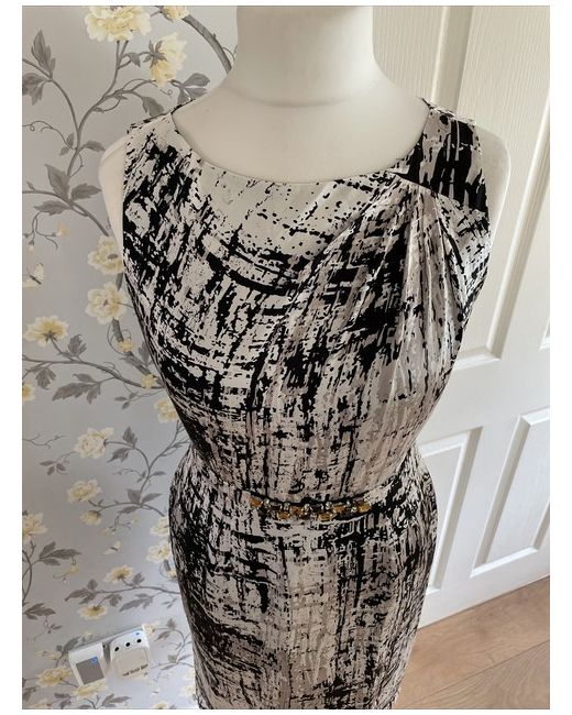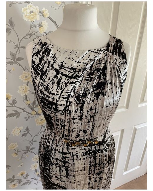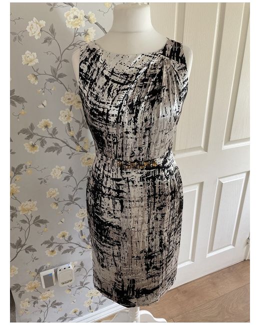 The dress features a round neck, back zip closure and a flattering knee-length cut. Crafted from 100% silk and carefully lined, this collarless dress has a sleeveless design with ruched detailing to one shoulder and a back split.