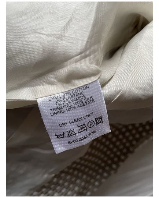 Gorgeous unworn jacket- too small for me. :(Largely cotton, silk trim- incredibly stylish. Dry-clean only