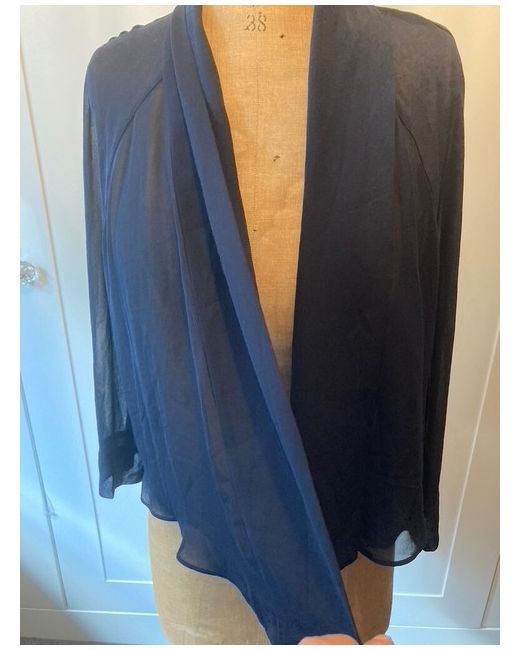This simply designed, open fronted, edge-to-edge relaxed fit ‘Miro’ shrug by Fenn Wright Manson has ¾ length sleeves and i t is in a lightweight sheer navy fabric. Material - 100% polyester. Care Instructions – Machine wash at 30˚ - cool iron.