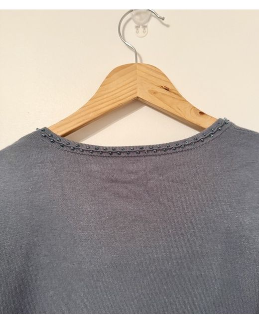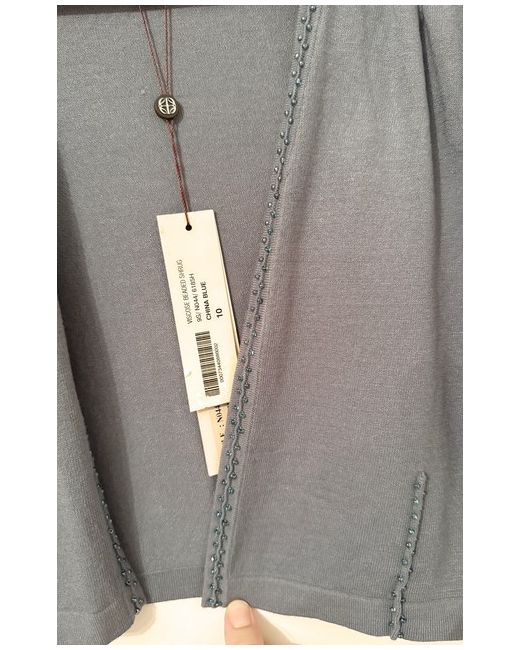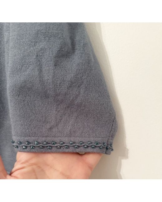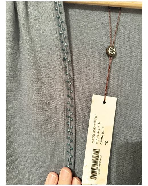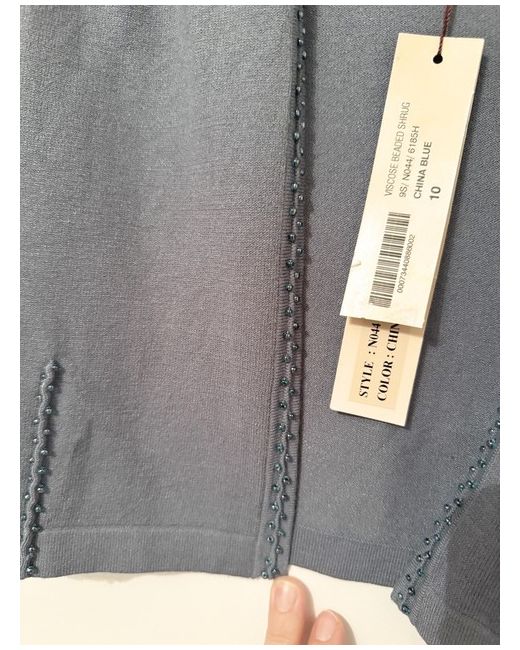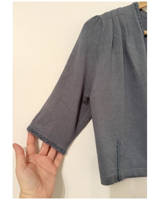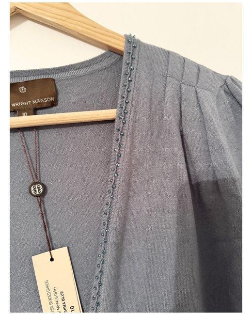 •Pattern: No pattern, but there is a beaded trim on the cuffs and a front trim. •UK Size: 10. •Main Colour: Blue. •Sleeve length: 12”. •Armpit to Armpit: 16”.