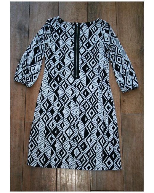 Stunning Fenn Wright Mason retro style dress size 8 in new condition. Flattering tunic shape with 3/4 sleeves with elasticated cuffs. Round neck with keyhole detail below. exposed silver coloured zip at the back.