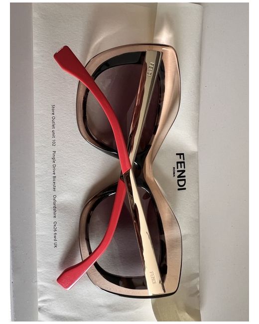 The Fendi sunglasses are stylish designer accessories perfect for women looking to make a statement. Made in Italy, these sunglasses feature brown frames and tinted lenses that provide UVA protection. The Fendi brand adds a touch of luxury and sophistication to any outfit, making them a must-have for those who appreciate high-end fashion. Perfect for adding a chic and fashionable touch to any summer wardrobe.