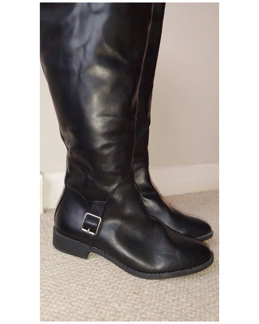 These knee-high Just Fab boots in size 6 are a stylish addition to any wardrobe. The biker-style boots feature a round toe, zip closure, and a low block heel for added comfort. Perfect for adding a touch of edge to any outfit, these Just Fab boots are a must-have for the fashion-forward individual.