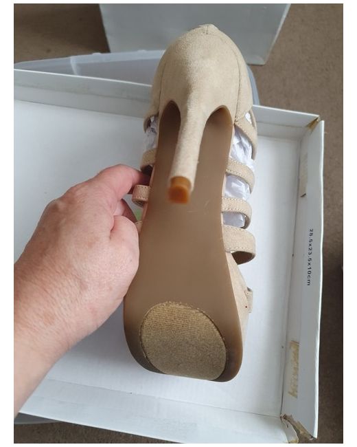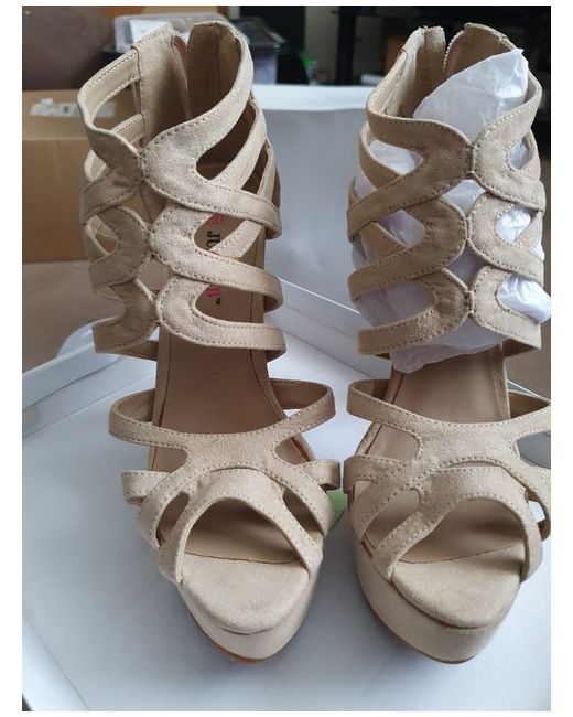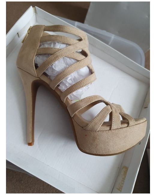 JUST FAB STRAPPY SHOE. Size 4 / 37. Slight mark on one show (shown in pics). Strappy wedge shoe. Never worn. Zip fasten back of heel.