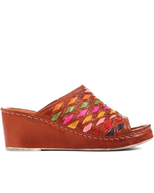 Keep it colourful and cute this summer with these leather detailed wedge mules. Layered on a cushioned footbed for supreme comfort underfoot and decorated with pretty scallop detailing to add some sunshine to every step.