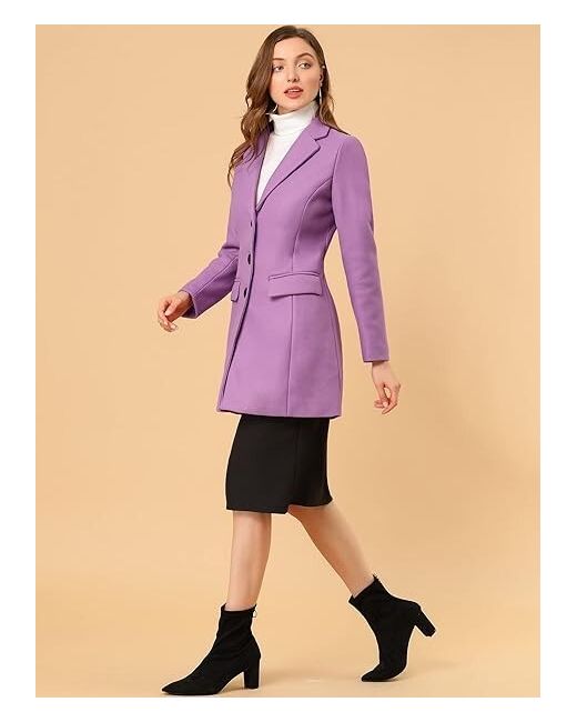 Stay stylish this season with this long, light purple trench coat from Allegra K. Made from high-quality polyester, this coat is perfect for any occasion. It features a notched lapel, single-breasted button closure, long sleeves, and a back vent for added comfort.