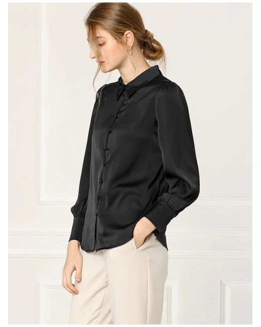 Elevate your wardrobe with this stunning satin blouse from Allegra K. The collared neckline and button closure add a touch of sophistication, while the long puff sleeves give a playful and chic look. This lightweight blouse is perfect for any occasion and is easy to care for with its machine washable polyester material. The black satin fabric gives a luxurious and timeless look, making it a great addition to any wardrobe. This regular fit blouse is perfect for women who want to feel comfortable and stylish.