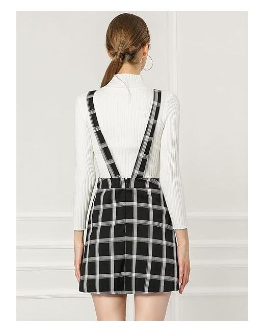 Allegra K Women s Adjustable Strap Checked Suspender Skirt Above Knee Overall Dresses Tartan Plaid Pinafore Dress Black-White