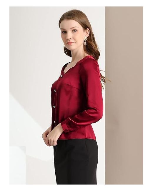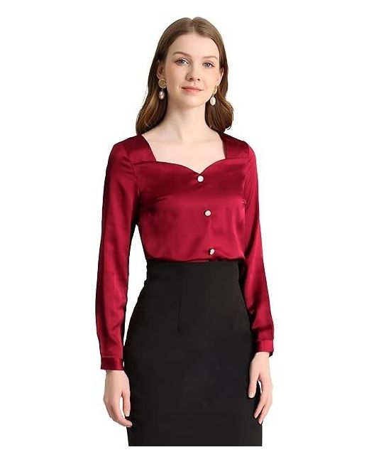 Add a touch of sophistication to your wardrobe with this beautiful satin blouse from Allegra K. The blouse features a sweetheart neckline, long sleeves with button cuffs, and a solid pattern in a stunning red colour.