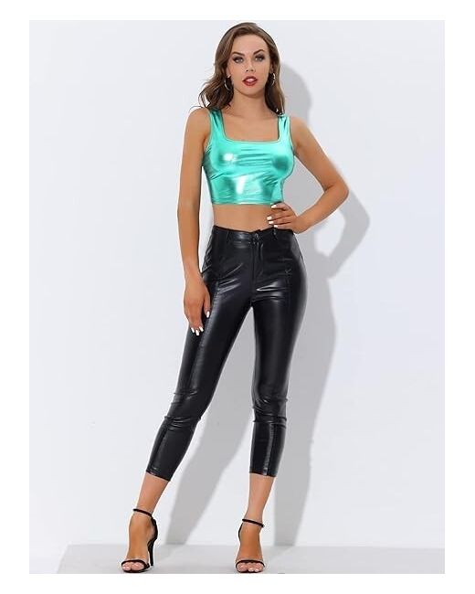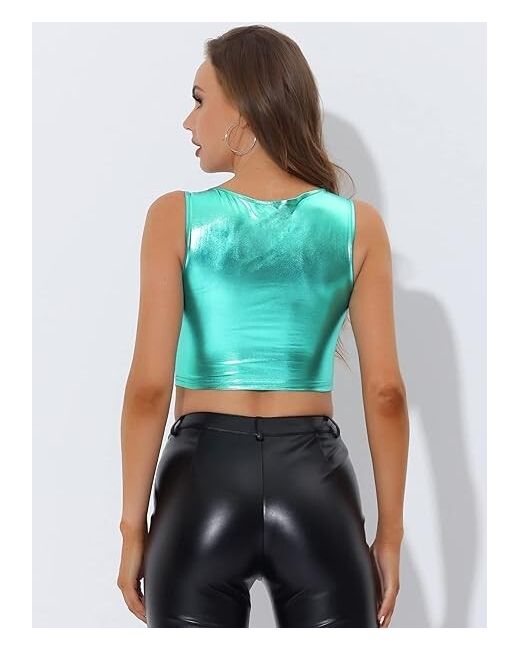 The sleeveless tank features a flattering scoop neckline and a cropped style, perfect for pairing with high-waisted bottoms. The top is made from a blend of polyester and elastane, providing a comfortable and stretchy fit.