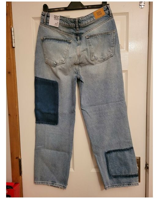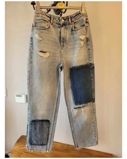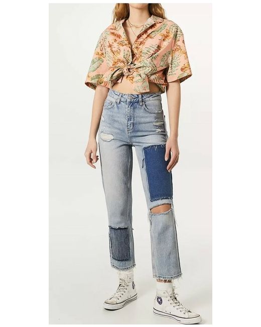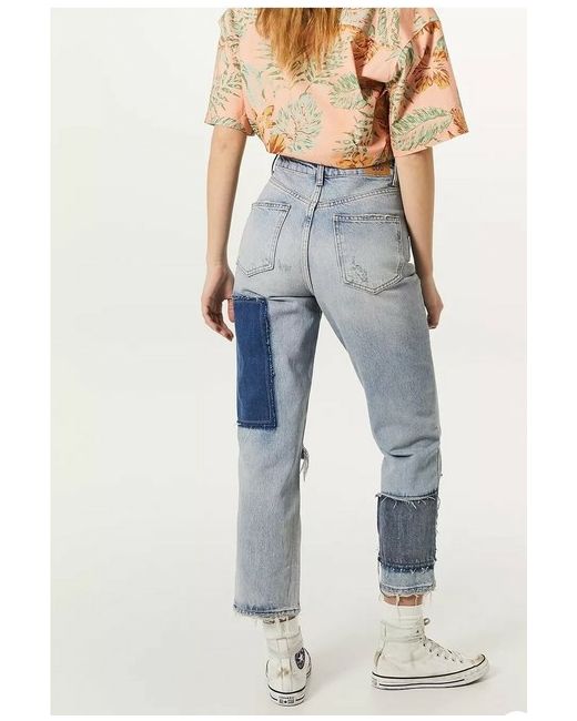 Features a patchwork look and crafted from authentic rigid denim. Includes a button fly closure and finished with slightly cropped hems.