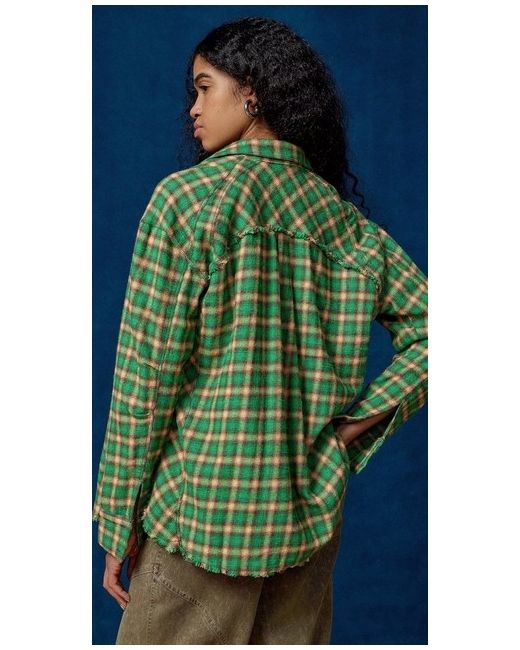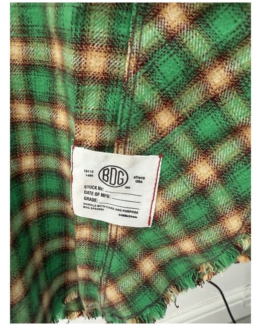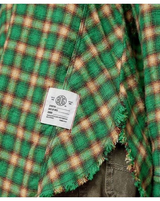 Core flannel shirt by BDG, designed with a relaxed fit and topped with a check print. Soft cotton shirt Ft. a spread collar, drop shoulders, long sleeves, a button-through placket and curved, raw finished hem.