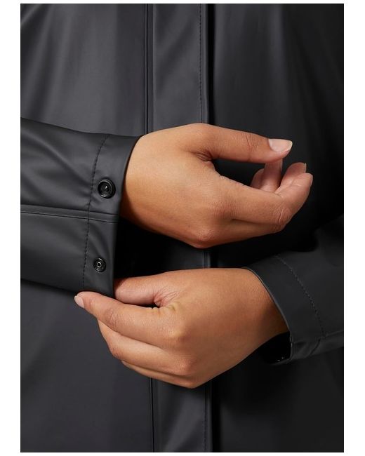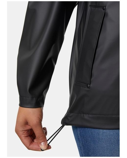 This is a Women's Helly Hansen Moss Rain Jacket in Black, size M. It is a 3-in-1 jacket with a cotton blend outer shell material. The jacket features a hood, full zip closure, long sleeves, and various pockets. It is lined, lightweight, quick-dry, and suitable for regular wear.